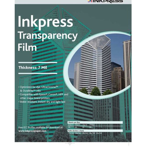 Find for item features and simillar products of Inkpress ITF851150 Specialty Media Transparency Film 7 Mil 8.5in. X 11in. 50 Sheets. Help in your choosing.